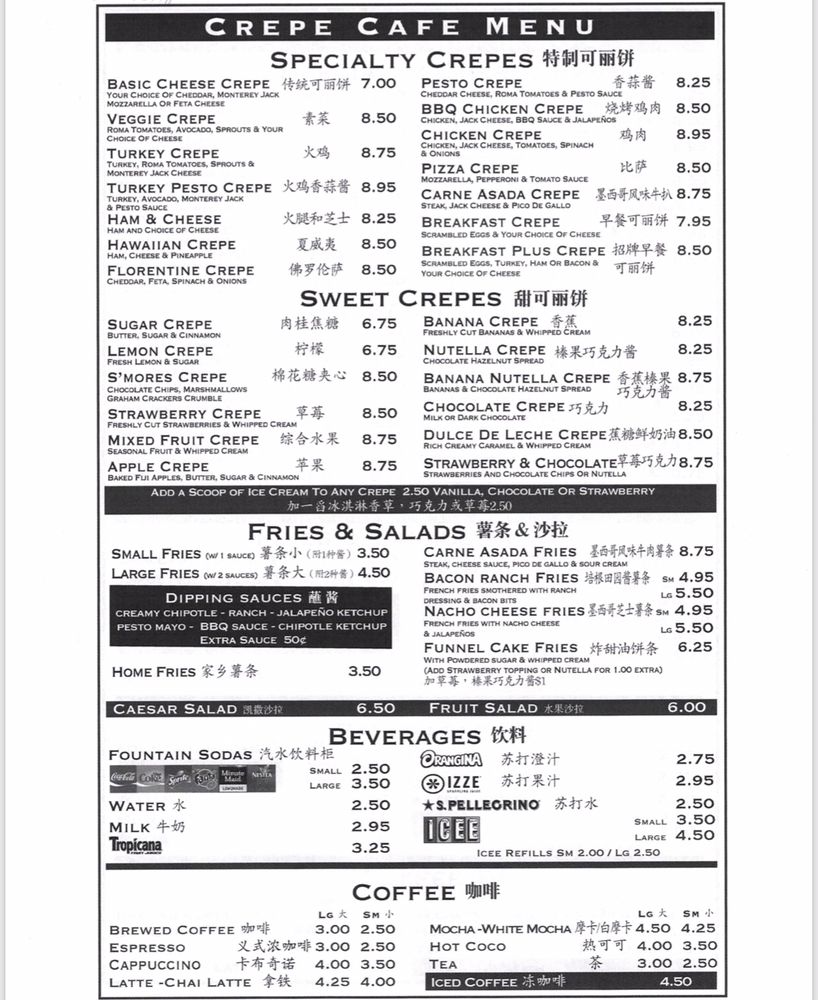 The Crêpe Café Menu (2025 Update)